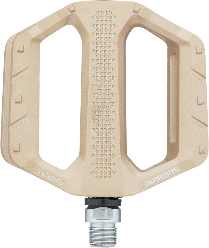 Die Shimano PD-EF202 sind Plattformpedale für den MTB-, Trekking- und City-Einsatz, die über einen Aluminiumkörper mit Aussparungen verfügen. Das reduziert im Vergleich zu dem Schwestermodell PD-EF205 das Gewicht und sorgt für bessere Schmutzabweisung. Die Pedale haben eine haltbare Stahl-Achse und bieten Tourenfahrern, Pendlern und Freizeitbikern eine stabile Aufstandsfläche mit flachen, integrierten Pins. Nicht zuletzt sind die PD-EF202 in mehreren attraktiven Farben erhältlich.