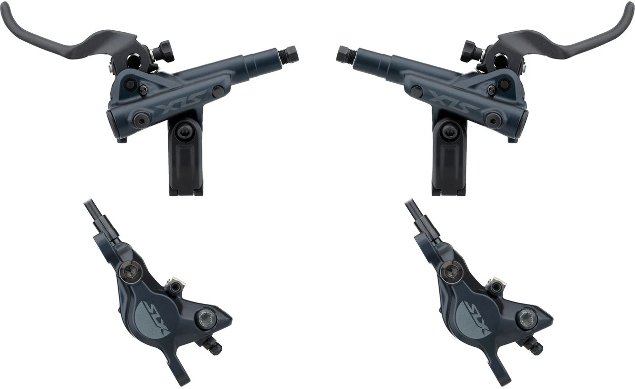Mit der BR-M7100 (VR + HR) bietet Shimano erstmals ein eigenständiges SLX Bremsenset speziell für den Cross-Country-Bereich an. Die Bremssättel verfügen über zwei Kolben und zeichnen sich durch ein schnelles, einfaches Anschlusssystem aus. Die Bremsgriffe BL-M7100 wurden mit einem neuartigen Design versehen, welches die Steifigkeit erhöht und für ein direkteres Feedback sowie mehr Bremsperformance sorgt. Natürlich sind sie mit Shimano Servo Wave Technologie ausgestattet. Bei kürzerem Leerweg steht somit mehr Leistung ohne lange Reaktionszeit zur Verfügung.