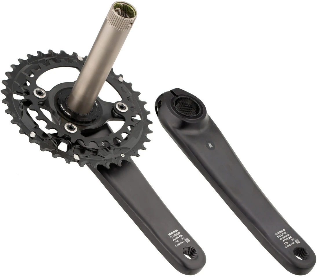 Schnellspanner: 141 mmSteckachse: 148 mmSchaltgriff:SL-M9100, SL-M8100, SL-M7100Umwerfer:FD-M9100, FD-M8100, FD-M7100Innenlager:SM-BB93, SM-BB80, BB-MT801, BB-MT800, SM-BB52, BB-MT501, BB-MT500, SM-BB94-41A, BB-MT800-PA, BB-MT500-PAKette:CN-M9100, CN-M8100, CN-M7100, CN-M6100Hinweis:Mit SM-CRM85 Kettenblatt auch 1-fach fahrbar (Kettenlinie 55 mm)Features:geschmeidigere Fahrt auf rauem Terrainextrabreite Abstufung vornesteifes und leichtes Design kommt aggressivem Trailriding entgegenhohlgeschmiedete Kurbelarme maximieren Powertransfer und minimieren das Gewichtleicht zu wechselnde Kettenblätter durch Direktmontage3 mm weiter außen liegende KettenlinieKurbelarme eloxiertgroßes Kettenblatt aus Aluminium (eloxiert), kleines Kettenblatt aus Stahl (lackiert)Technologie:Hollowtech II